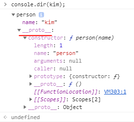 | 생성자 함수 person dir | 객체 kim dir |