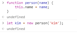 생성자 함수 person 과 kim 객체를 생성했다.